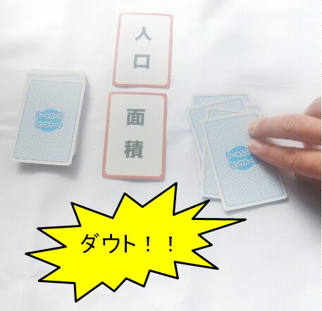 場に出された都道府県カードの数字が実際に小さかったら都道府県カードを出したプレイヤーが、数字が大きかった場合はダウトを宣言したプレイヤーが手札が5枚になるように山札から都道府県カードを引いてください。